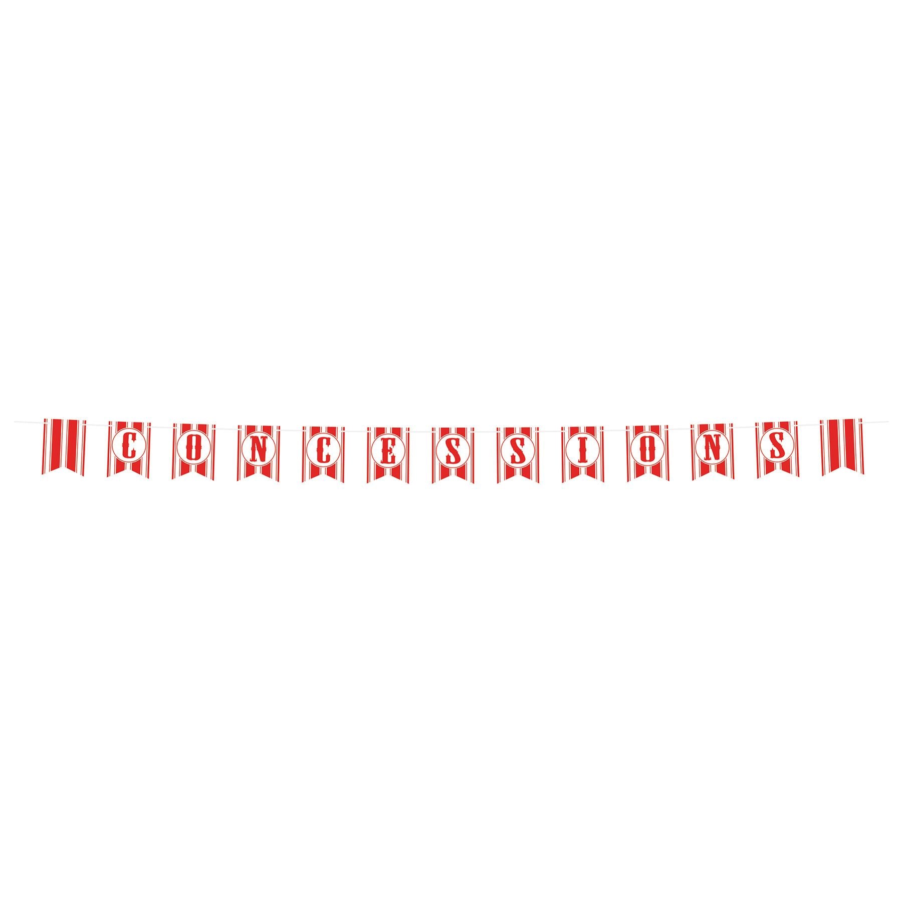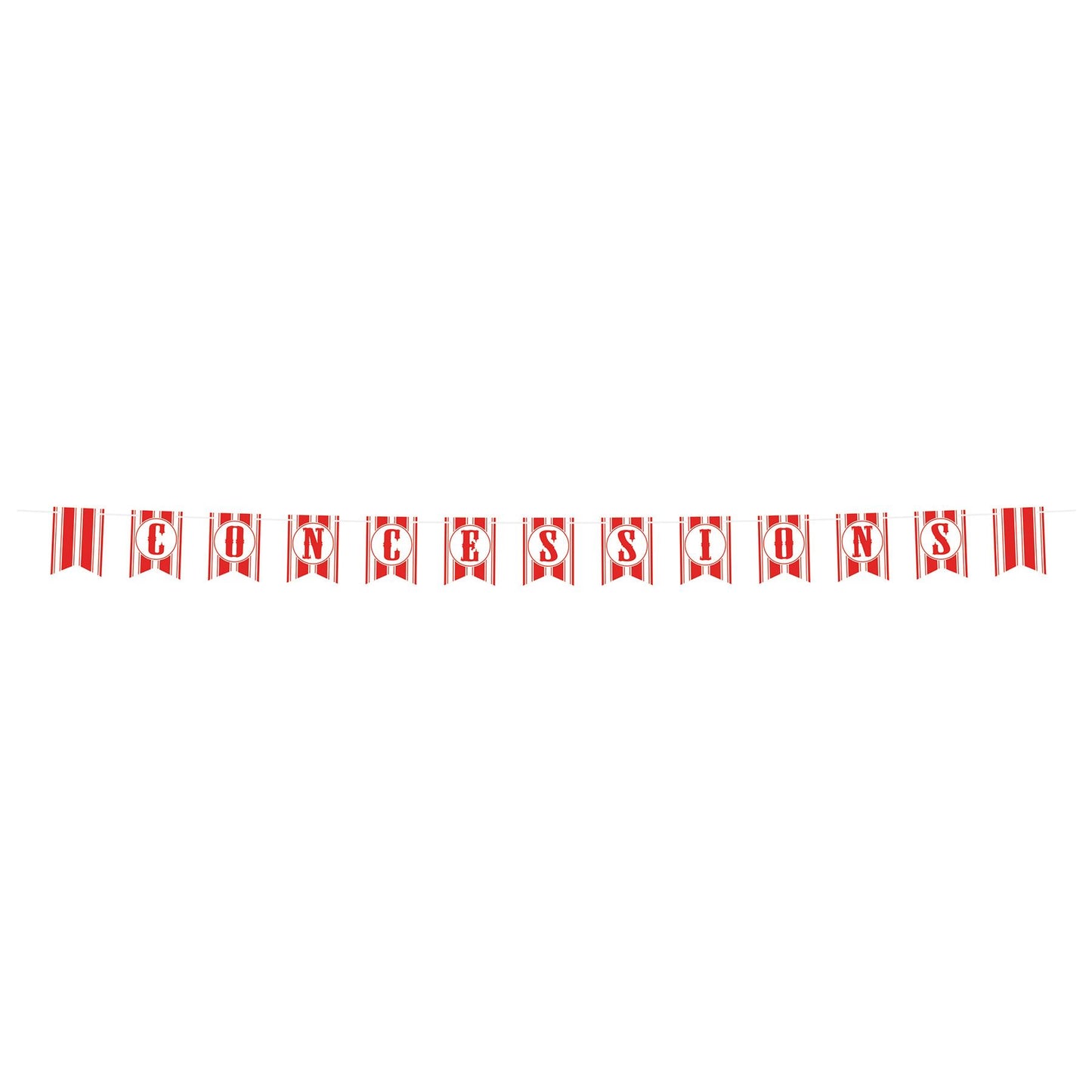 If you're having a circus themed party or running a Concession stand at your local sporting event; this Concession Pennant Banner is a must. One (1) Concession Pennant Banner comes per package, measures 10 feet long and is made of cardstock material. Additional string is attached to each end for easy hanging. Simply hang over the stand or food table to let everyone know where the food is. Make sure to check out our large variety of Circus and Carnival themed party items.