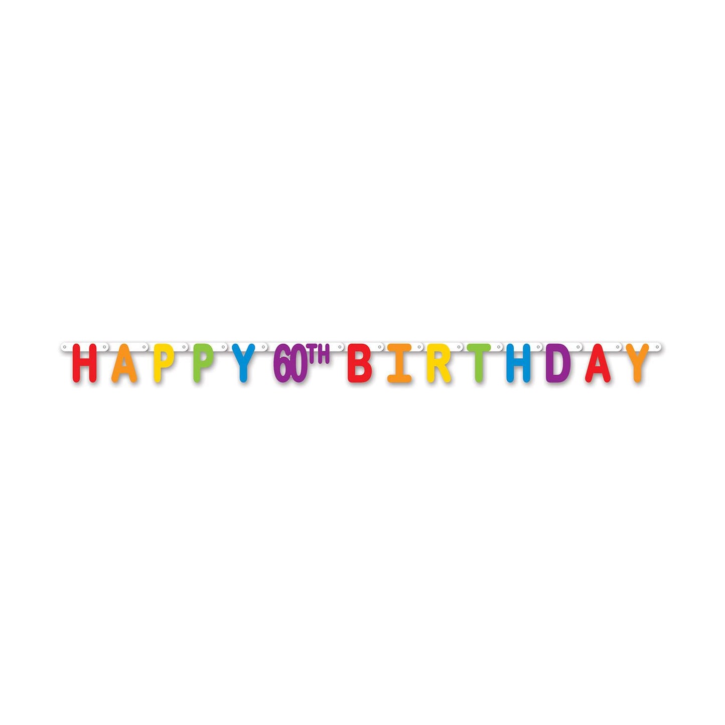 Look out...someone's made it to their 60th year. Use this colorful Happy 60th Birthday Streamer to bring happy colors to your special day. One (1) Happy 60th Birthday Streamer comes per package and measures 5 1/2 feet long. Printed on cardstock material, strings are attached for easy hanging from tables, walls and door ways. Make sure to check out our matching colorful decorations to go with this streamer.