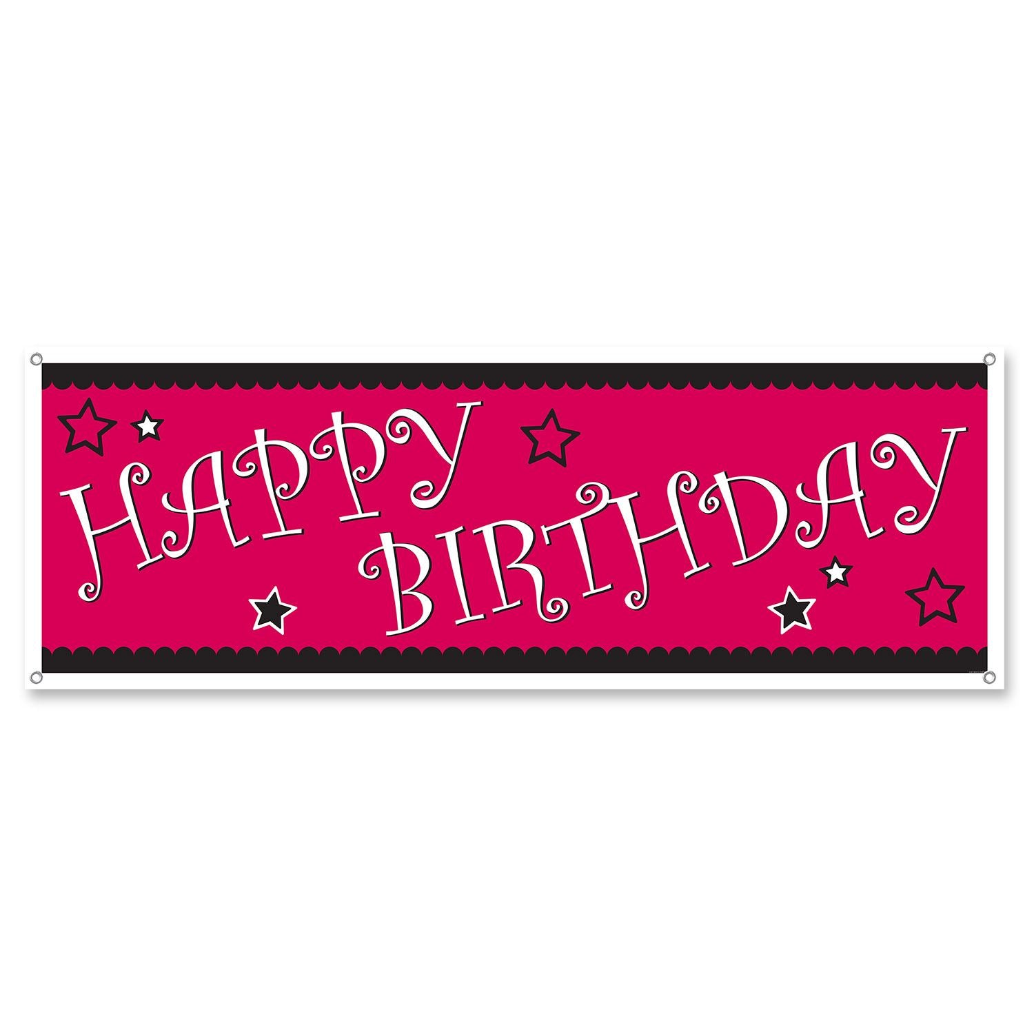 This banner is big measuring 5 feet by 21 inches, and will certainly not be missed by your special birthday girl. The Happy Birthday Sign Banner is magenta color with black border and white HAPPY BIRTHDAY lettering. This item is great at letting someone know that you care about them and their special day. A great item for Sweet Sixteens and 21st birthday parties. Looking for more memorable birthday decorations then check out the Birthday Celebration Metallic Mylar Balloons or Metallic Happy Birthday Fringe Banner. |