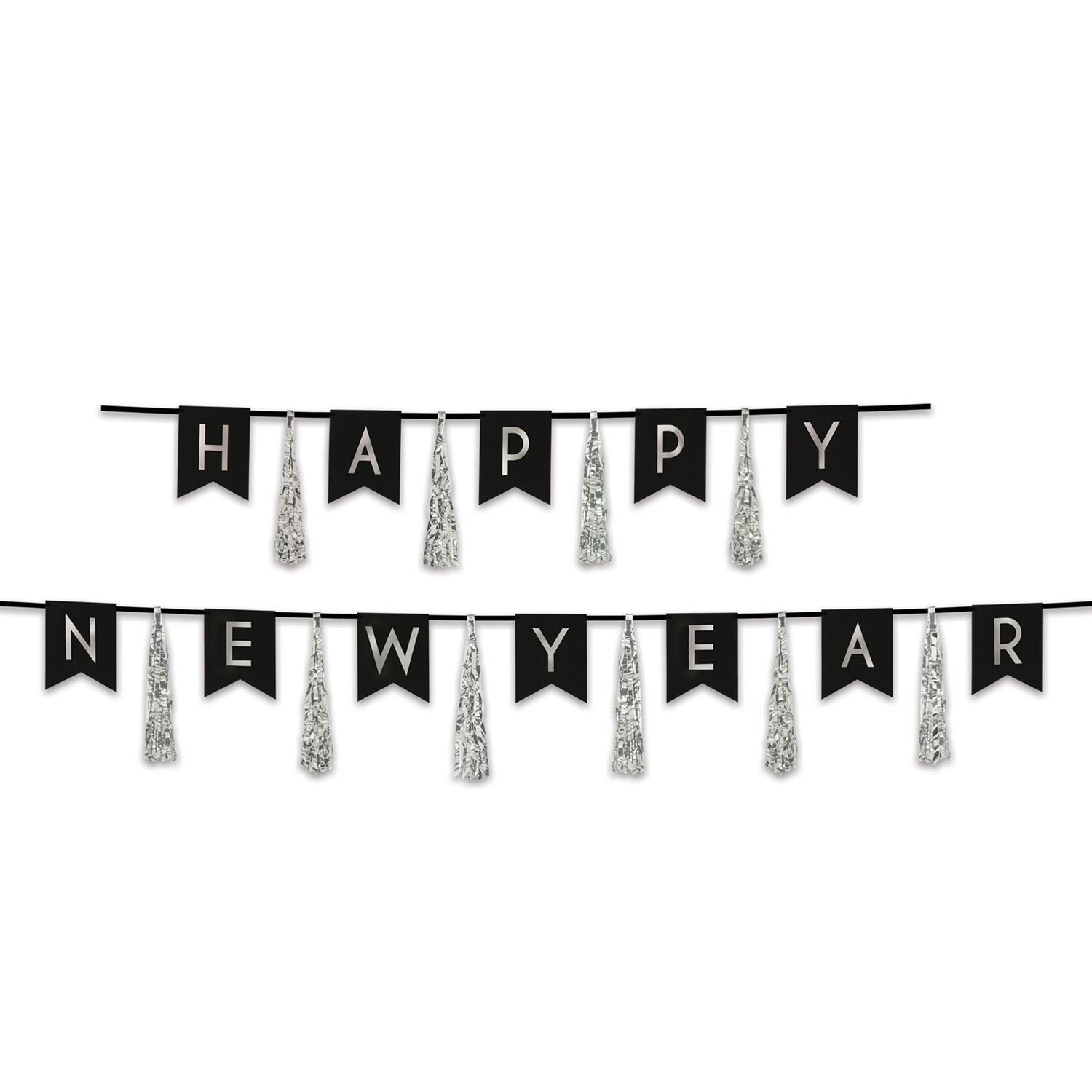 Beistle Happy New Year Tassel Streamer - Black and Silver - New Years | Party