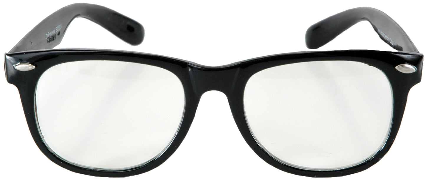 Glasses have a black frame with clear lenses.Great for those brothers who are into the blues!One size fits ages 12 and up.